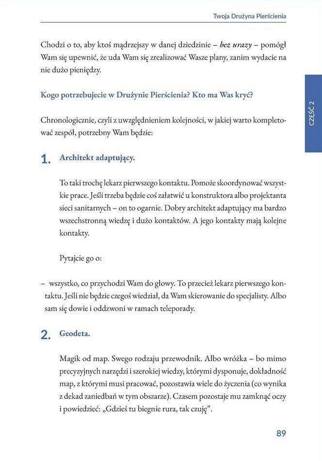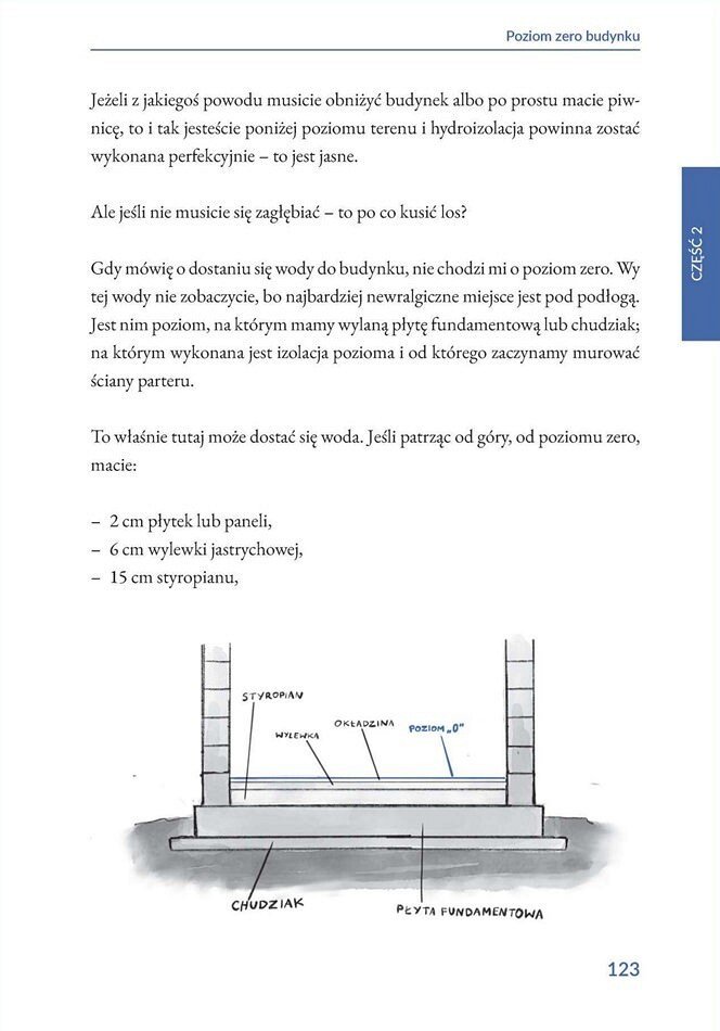 W tej książce nie ma przytoczonych dziesiątek norm i przepisów budowlanych. To nie jest publikacja akademicka. Postawiłem sobie za cel pisać w przystępny sposób, aby treść była łatwa w odbiorze, i jednocześnie skupić się tylko na konkretach. W książce znalazła się esencja wynikająca z 12 lat mojej praktyki.