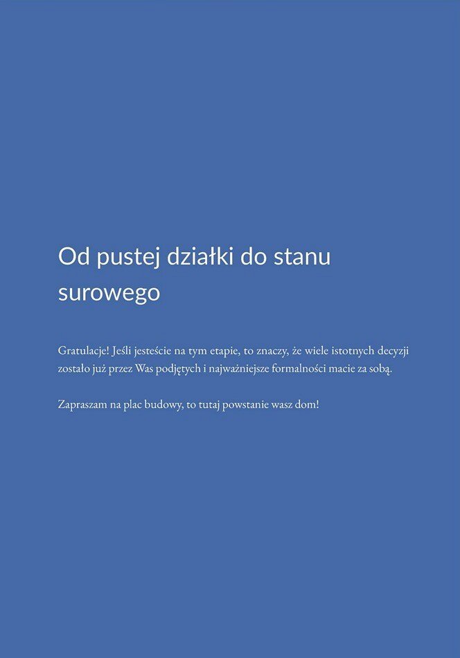 Napisałem ją z myślą o tym, aby stała się kompleksowym przewodnikiem po całym procesie budowy domu jednorodzinnego. Opisałem w niej, jak przygotować się do budowy domu oraz na co zwrócić uwagę na każdym z etapów budowy tak, by przejść je bez niepotrzebnych nerwów i móc spać spokojnie.